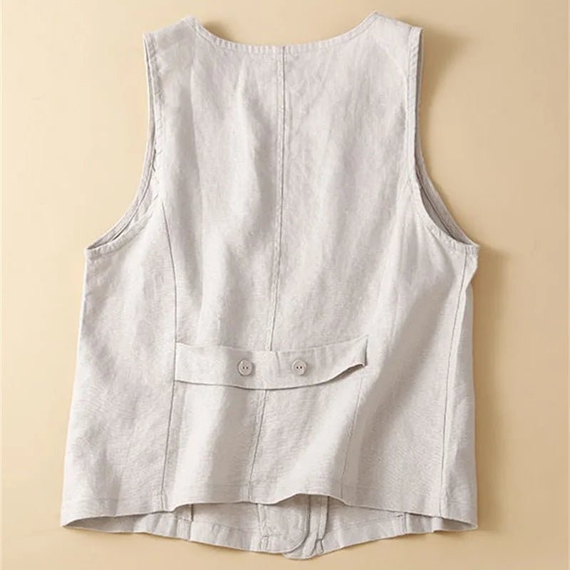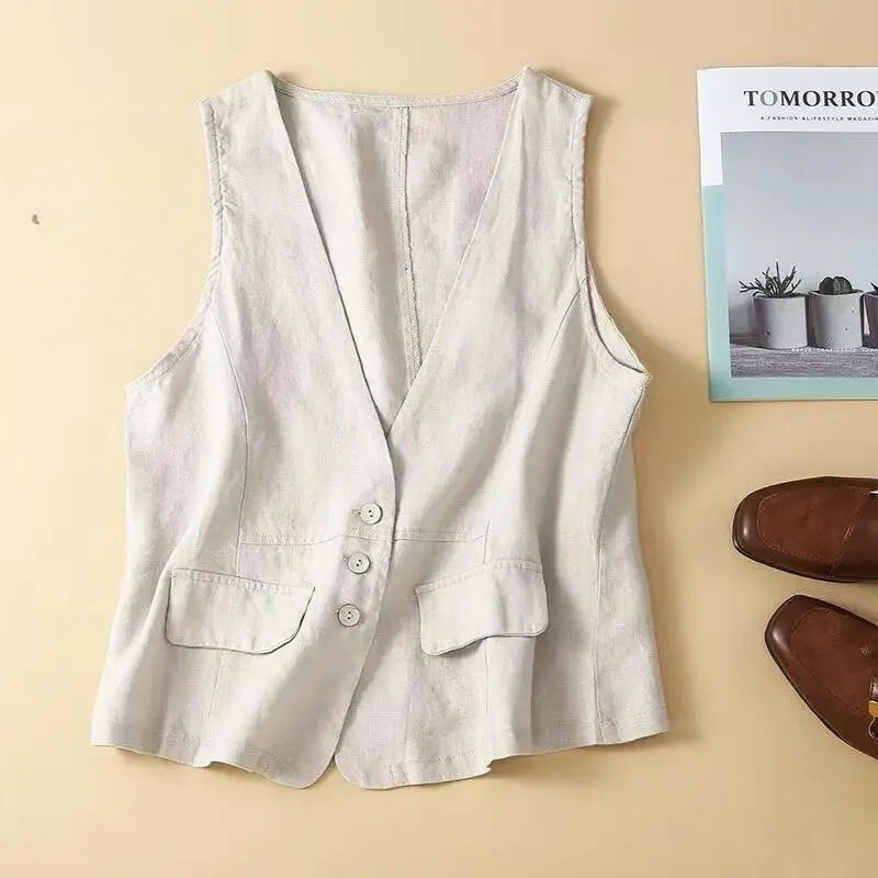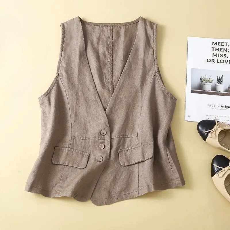 The Celestia Vest is made from a breathable cotton blend that moves with you and feels soft all day. With clean seams, flap pockets, and a lightly structured fit, it brings quiet confidence to any look—whether layered over a tee or styled solo.