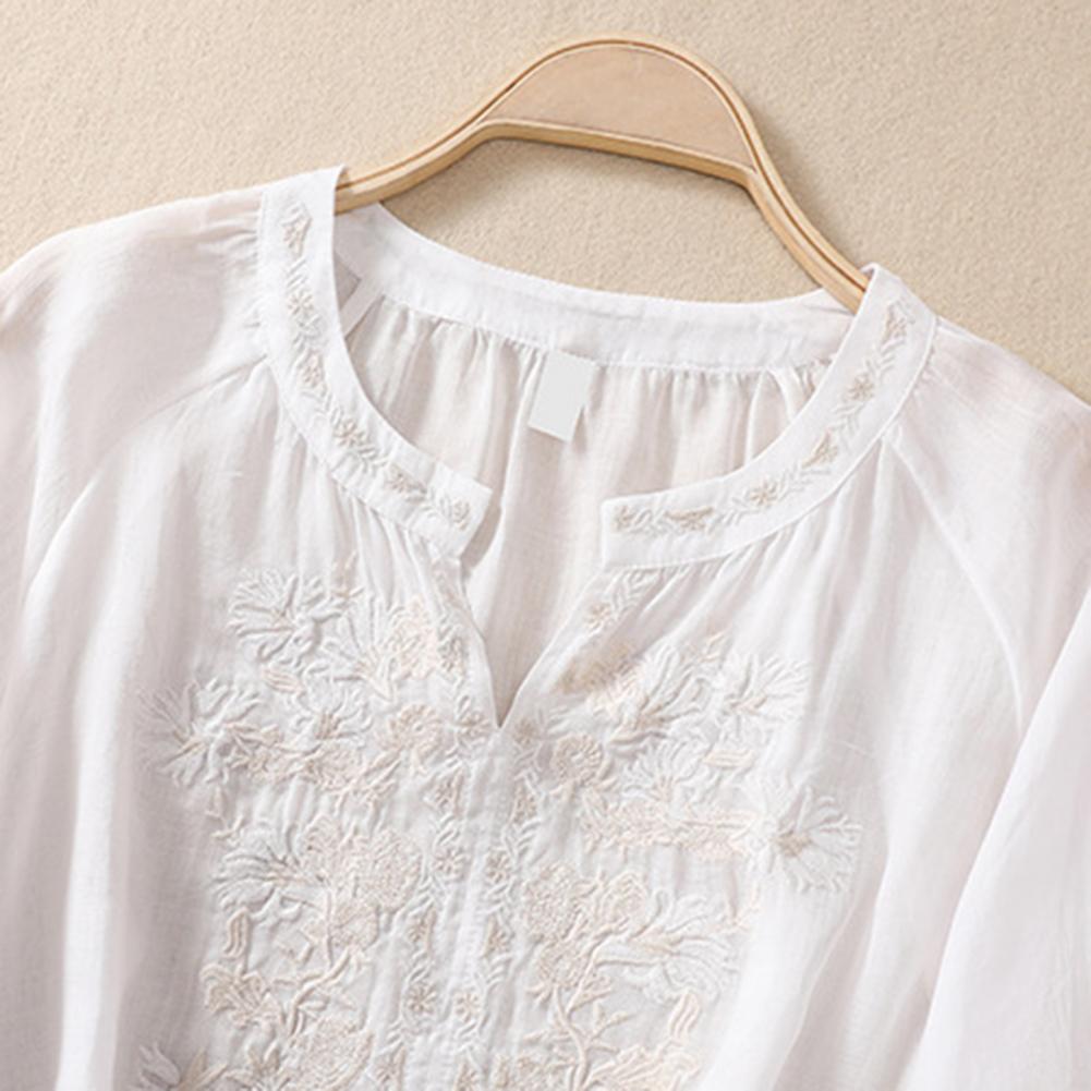 Light, breathable, and subtly detailed. The Éliane is crafted from our signature cotton-linen blend, featuring tonal floral embroidery and a gently gathered neckline. An easy favorite for sunlit mornings, slow days, and soft moments in between.