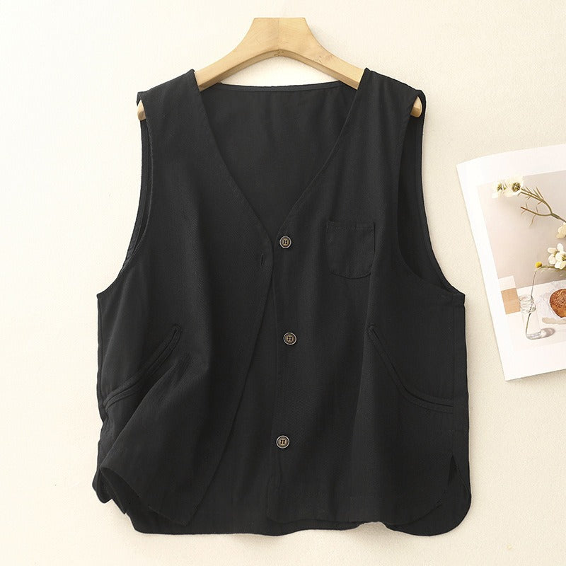 We’re done settling for basics—so we made our own. Meet the Elva Vest, crafted from our signature cotton linen blend with a light, breathable feel that moves with you. Designed with roomy pockets, smooth lines, and a no-fuss fit that layers like a dream. It’s calm, cool, and just different enough to make people look twice.