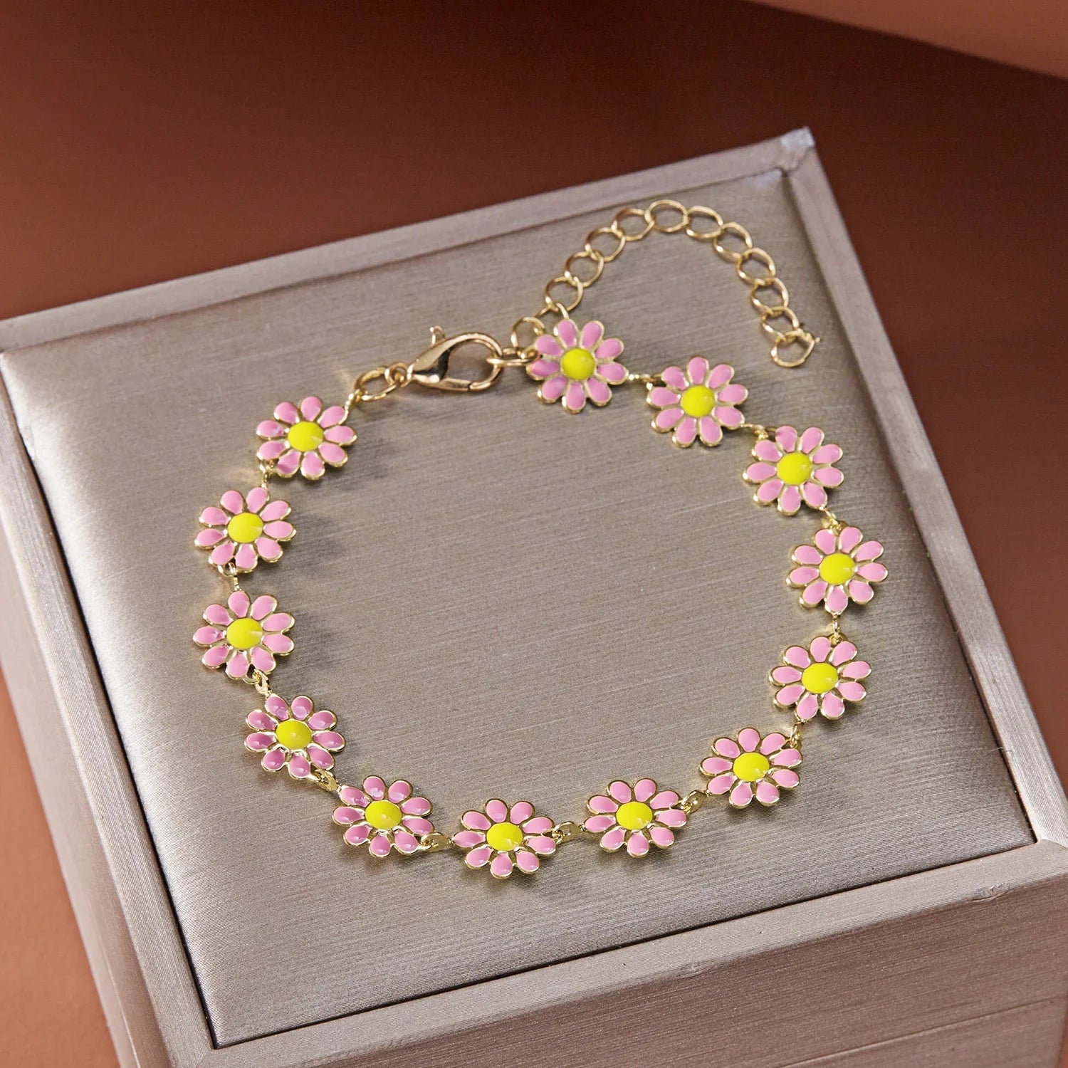 Let your style bloom. This tarnish-resistant bracelet features a delicate flower design, an adjustable clasp for the perfect fit, and a lightweight feel for all-day comfort.